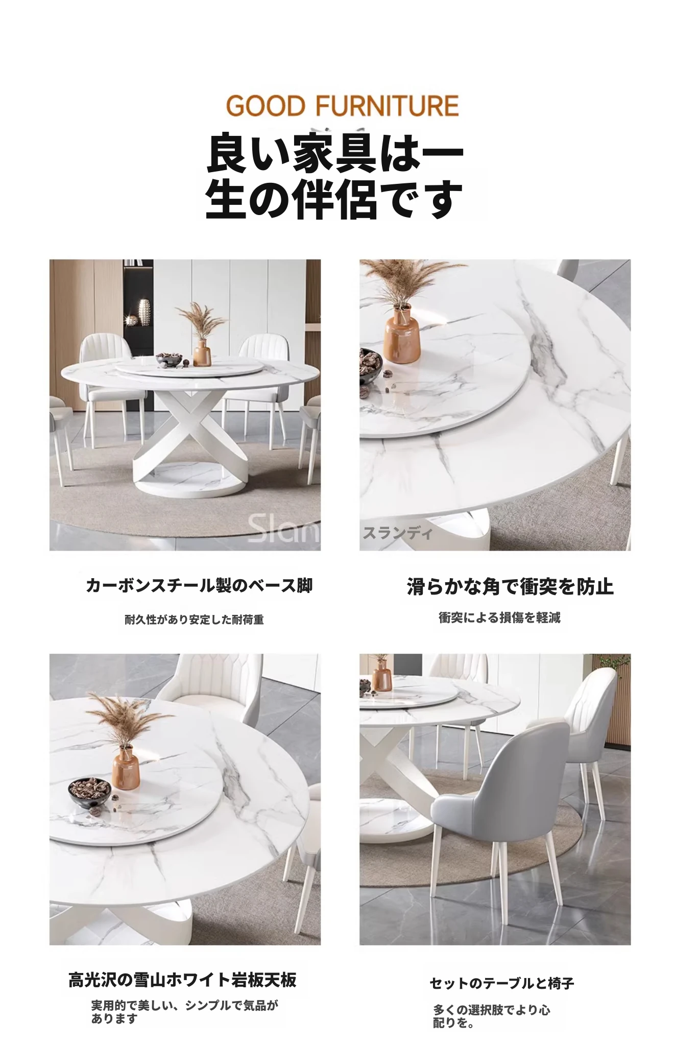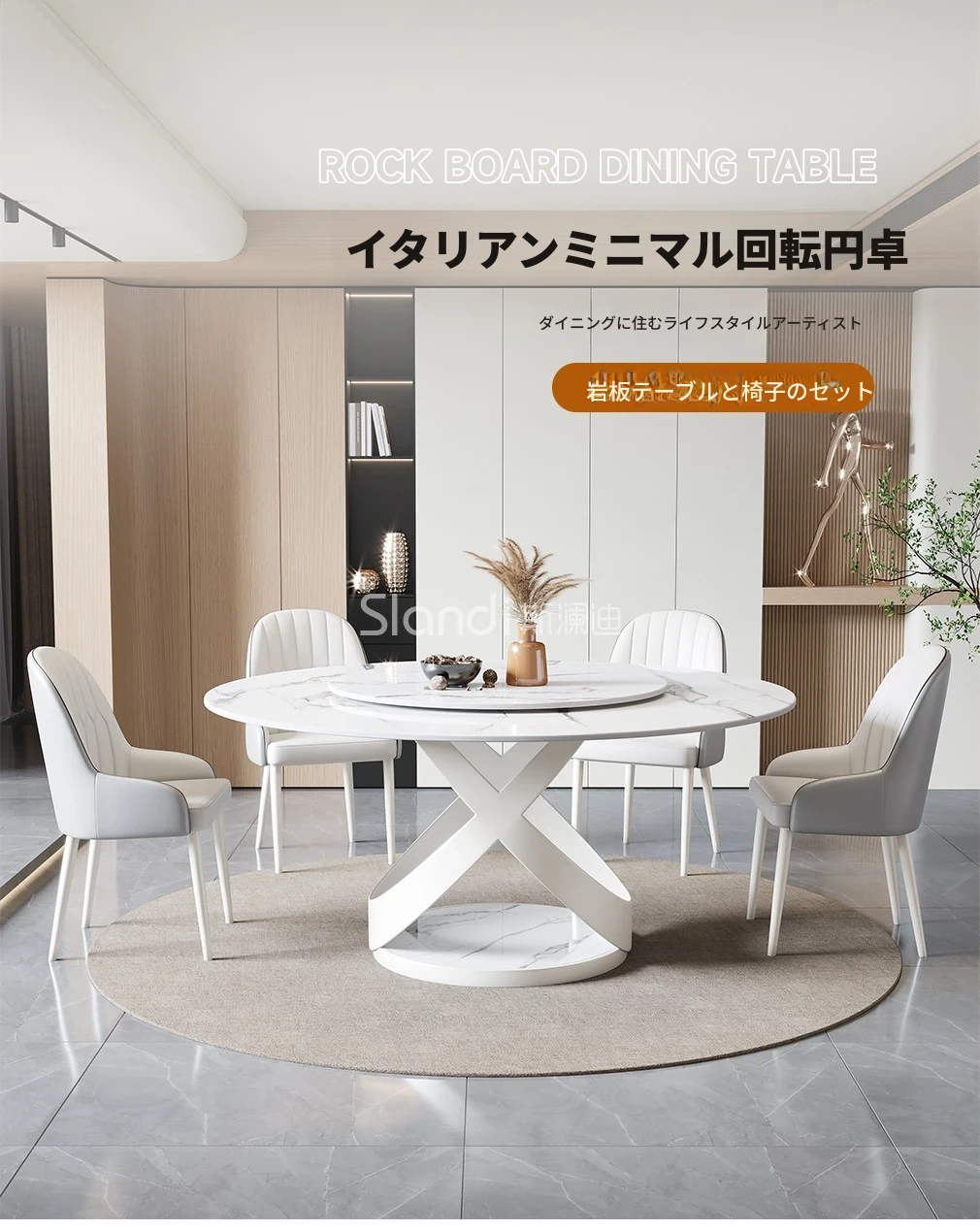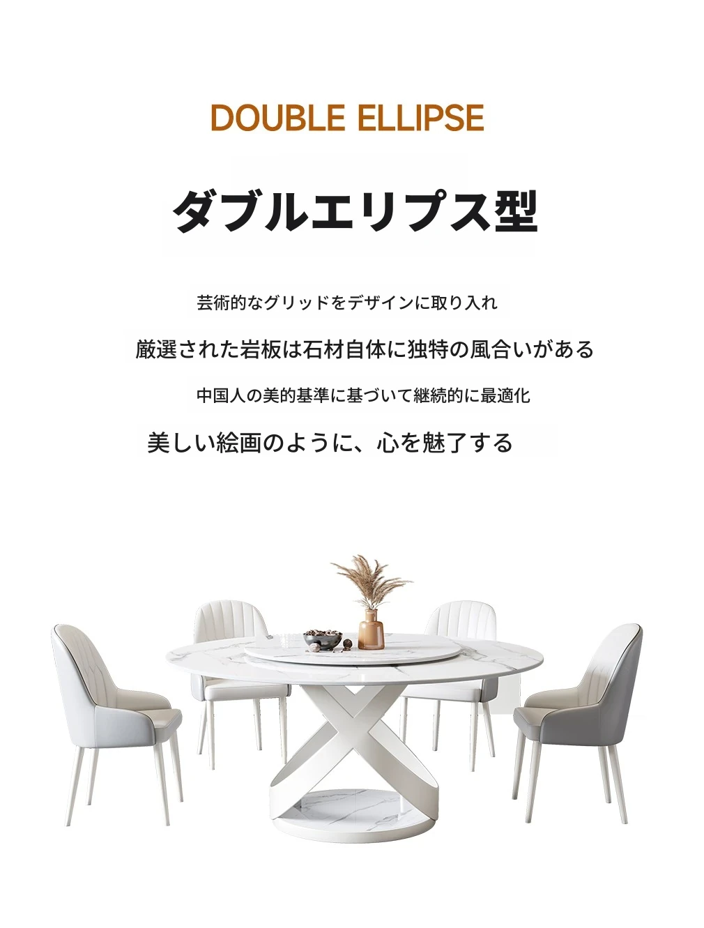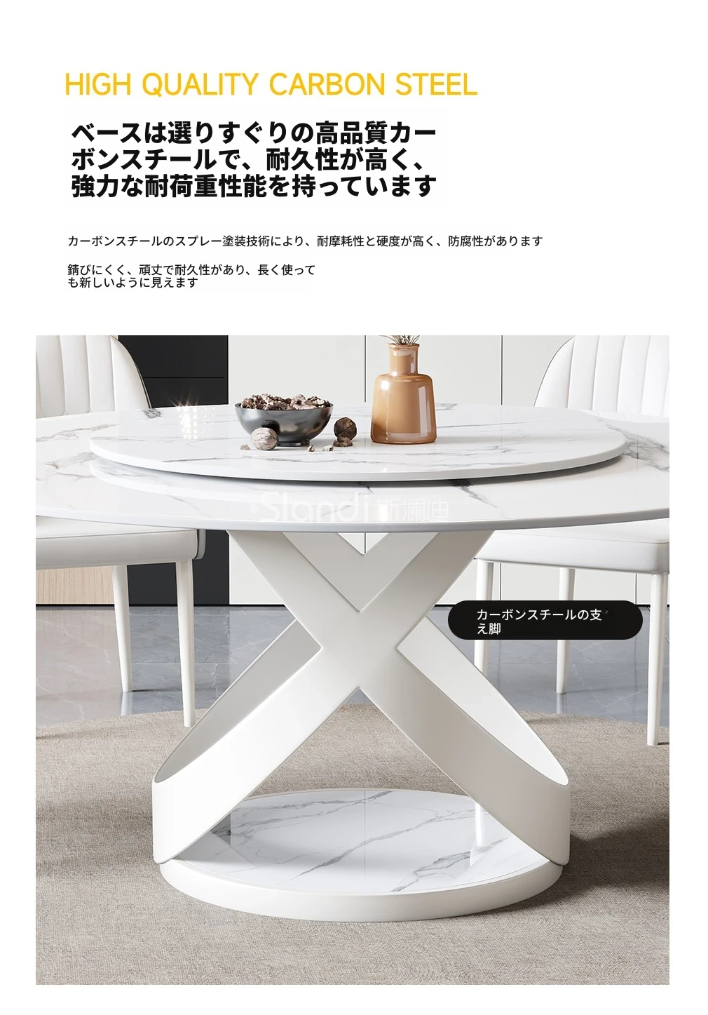 新作!シンプルで洗練されたラウンド大理石ダイニングテーブルセット - モダンなホテルやレストランに最適な回転式デザイン!快適さとスタイルを両立した一品。