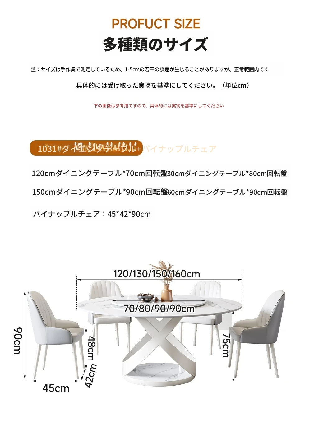 1.3メートル円卓+パイナップルチェア*4