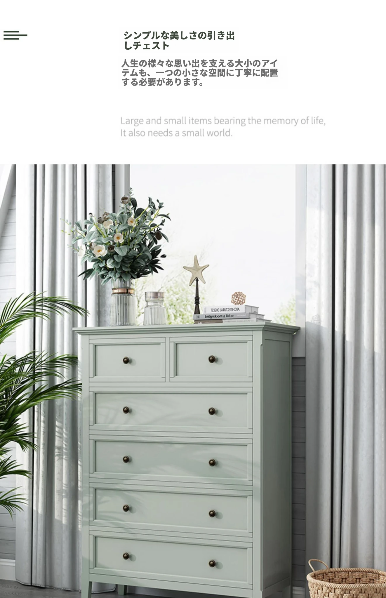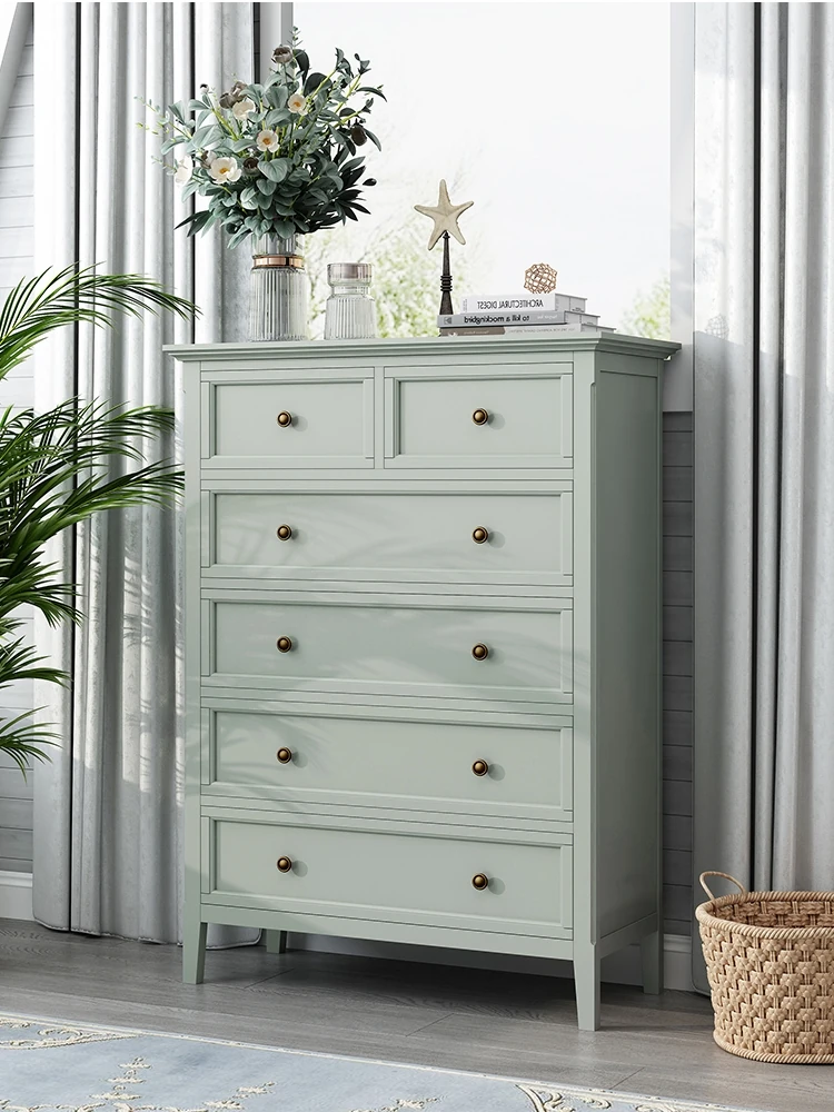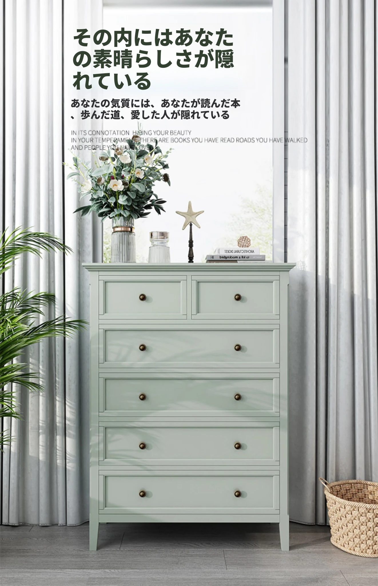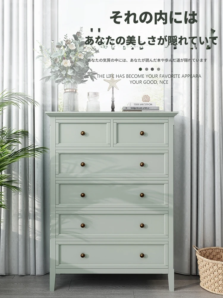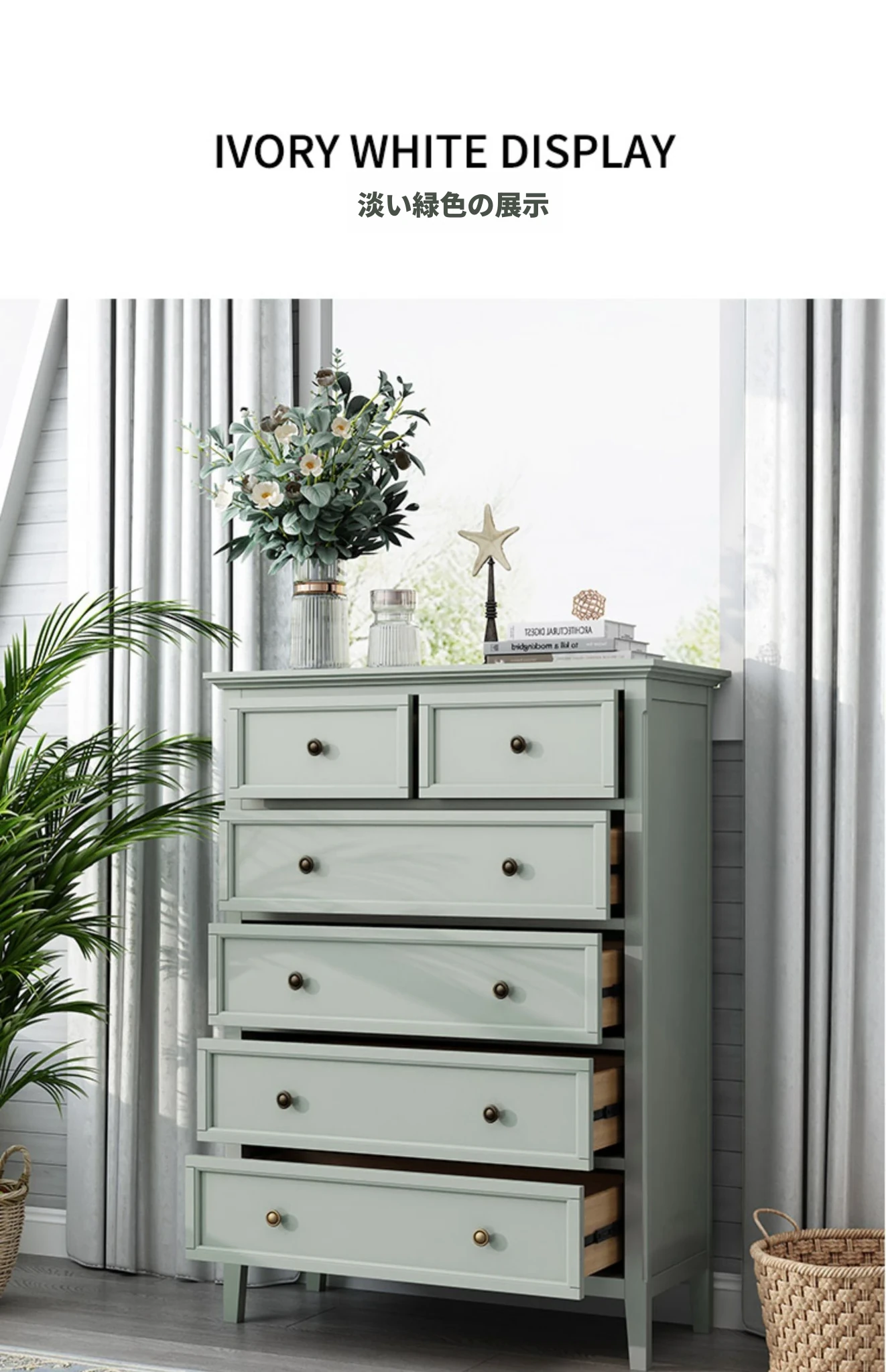 アメリカンスタイルのウッドペイント六段チェスト - レトロな収納キャビネット、寝室や玄関に最適!高級感漂う全体家具で、スタイリッシュな空間を演出します。