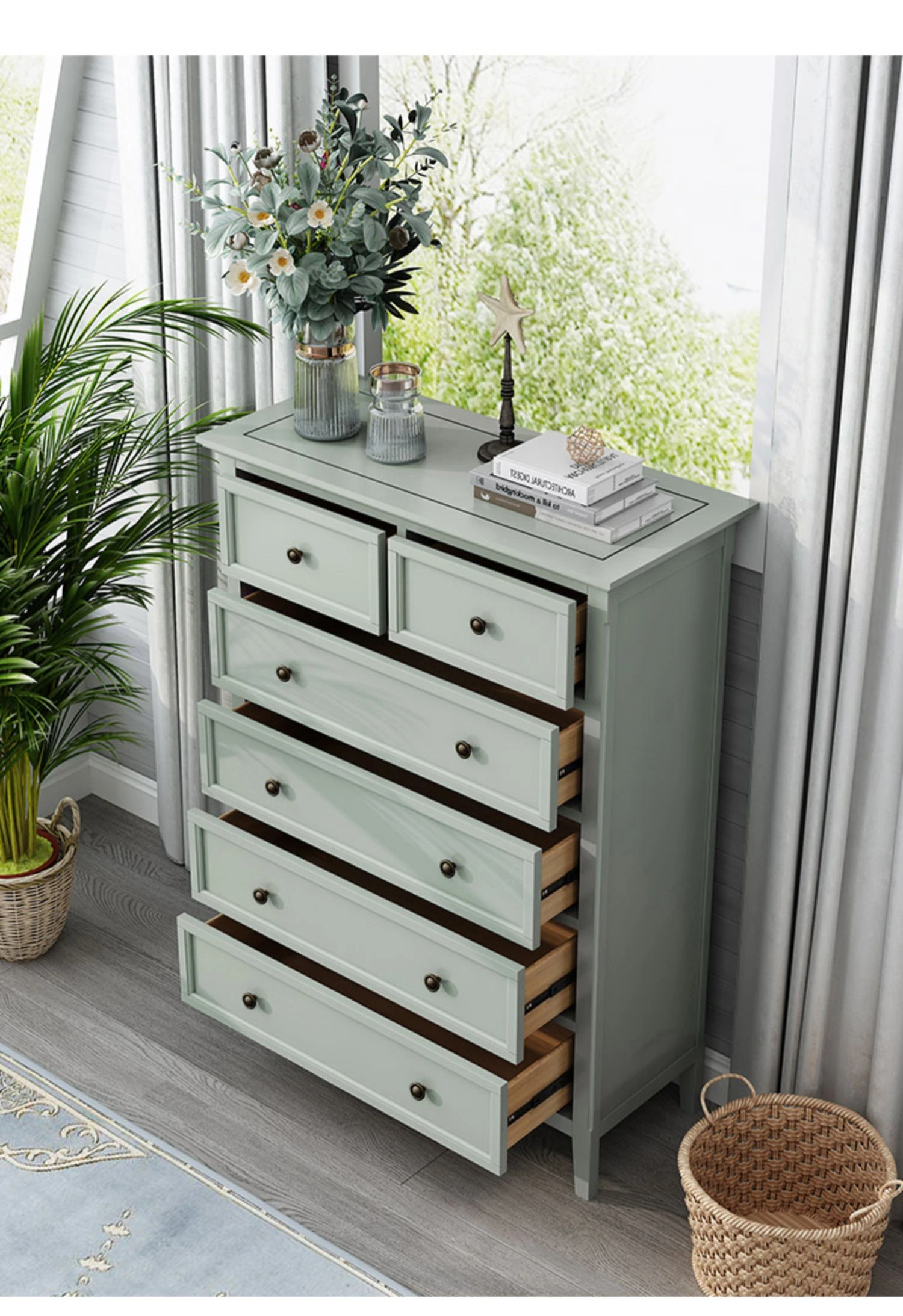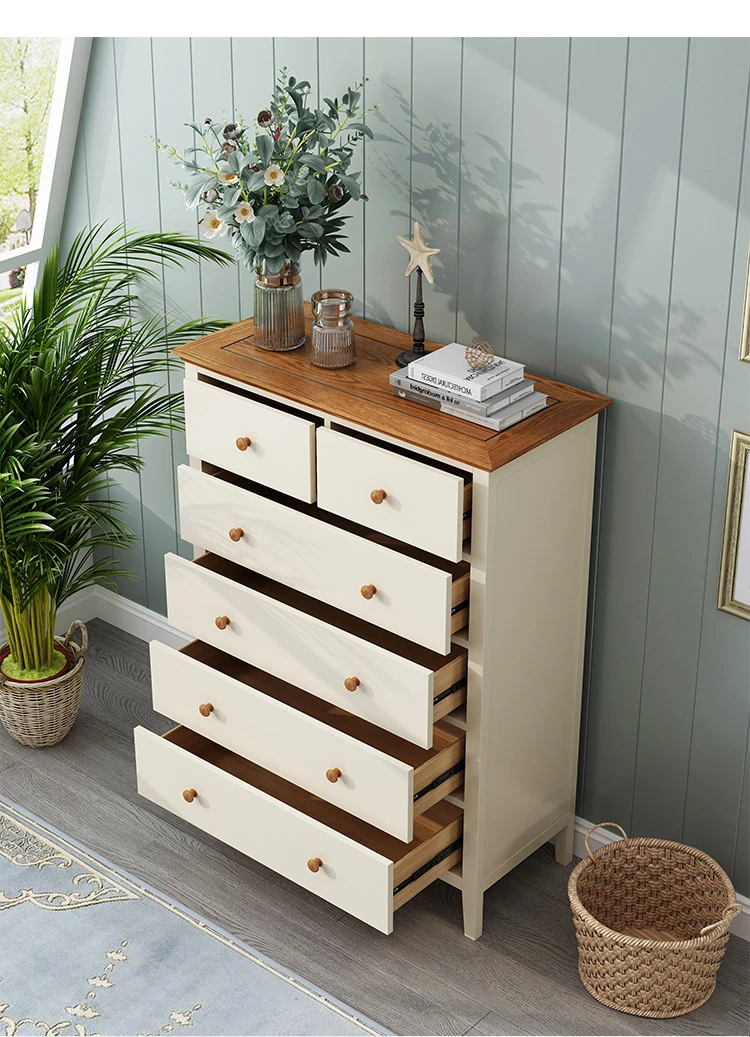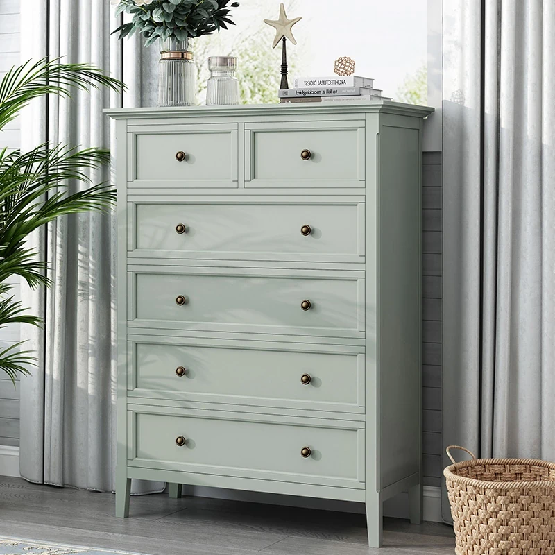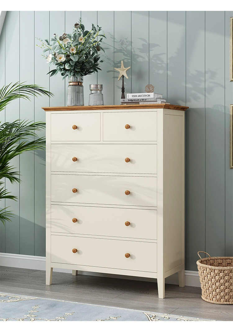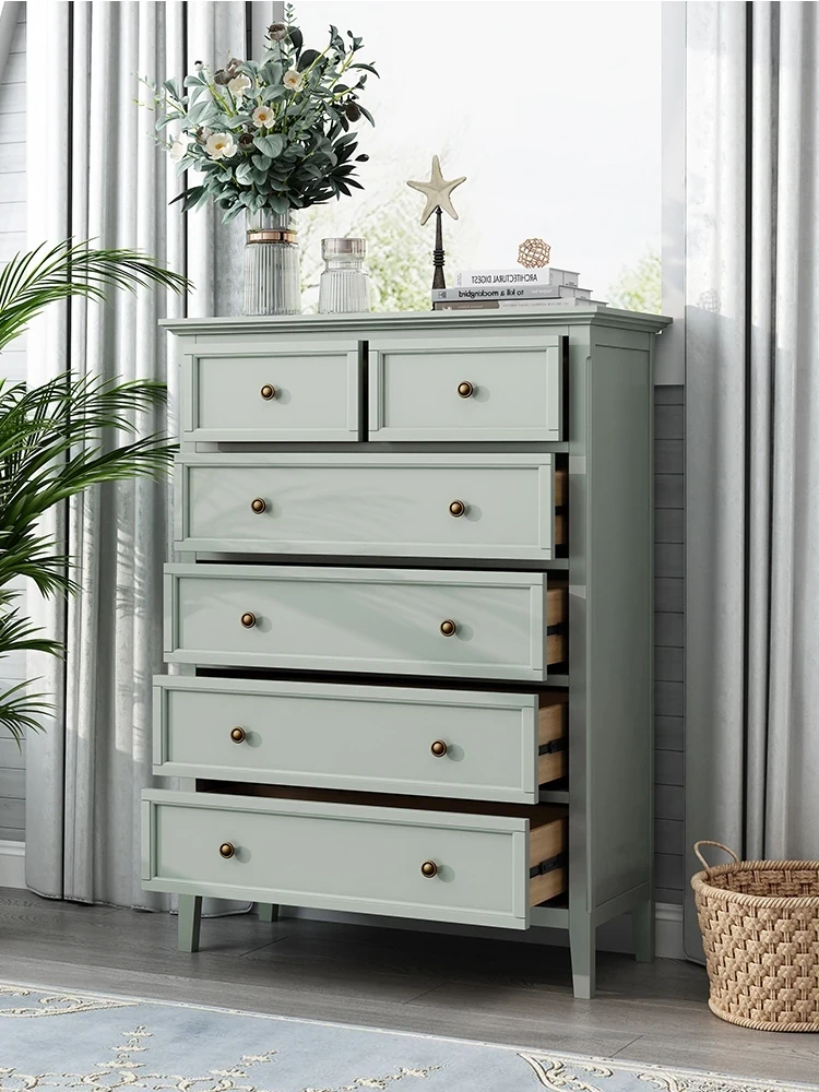 アメリカンスタイルのウッドペイント六段チェスト - レトロな収納キャビネット、寝室や玄関に最適!高級感漂う全体家具で、スタイリッシュな空間を演出します。