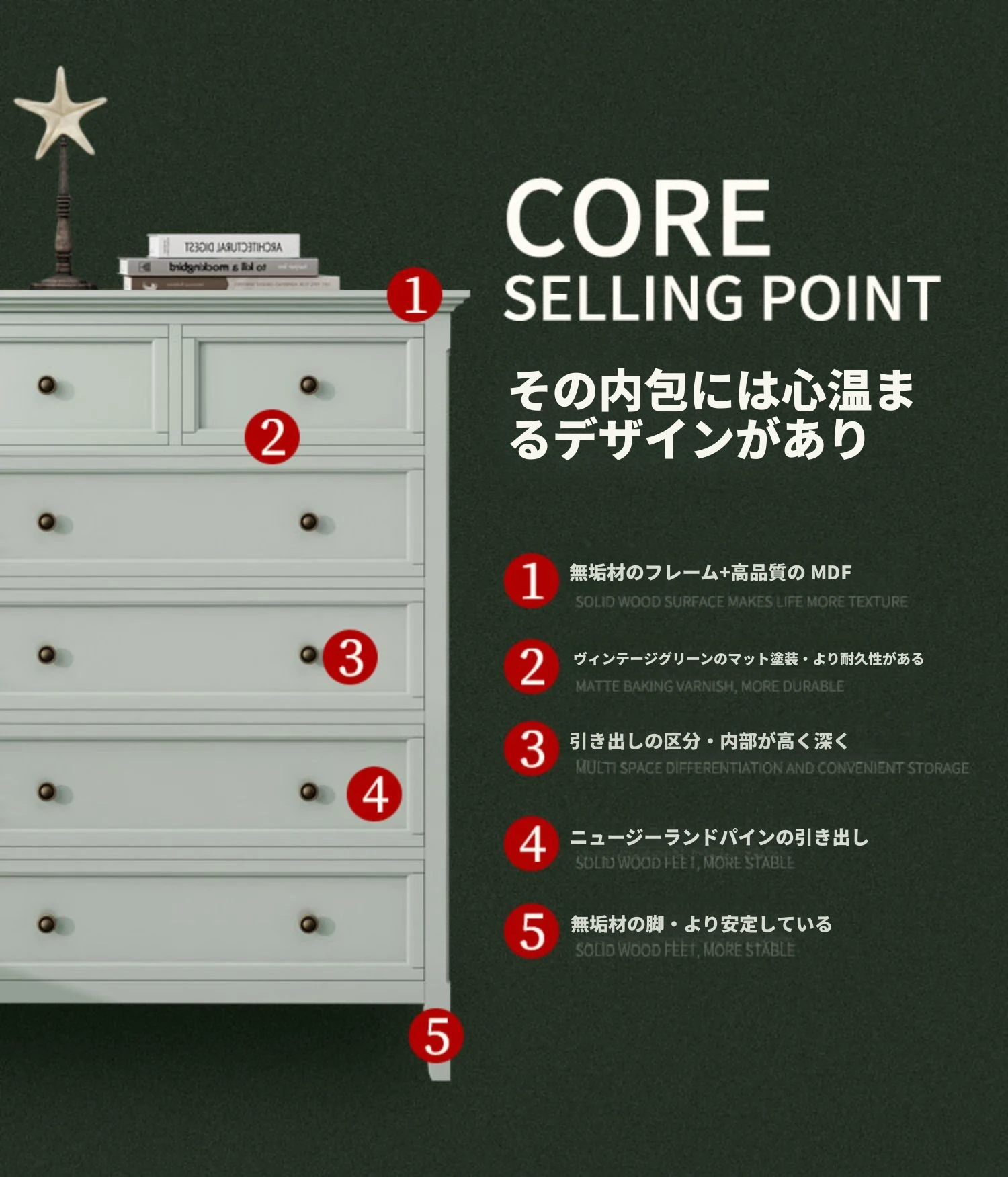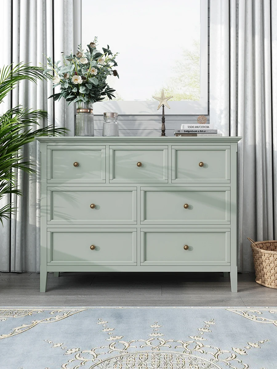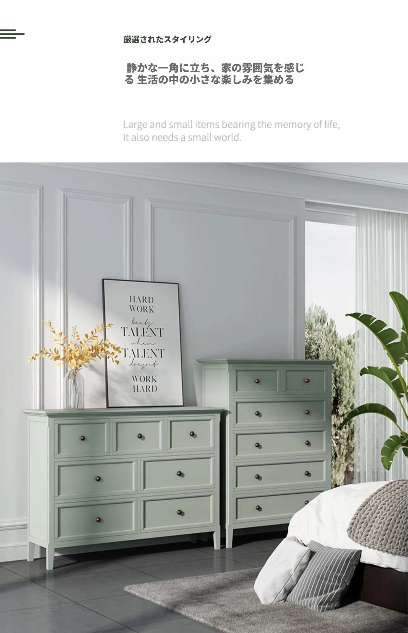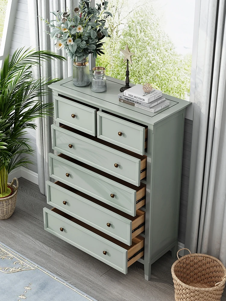 アメリカンスタイルのウッドペイント六段チェスト - レトロな収納キャビネット、寝室や玄関に最適!高級感漂う全体家具で、スタイリッシュな空間を演出します。