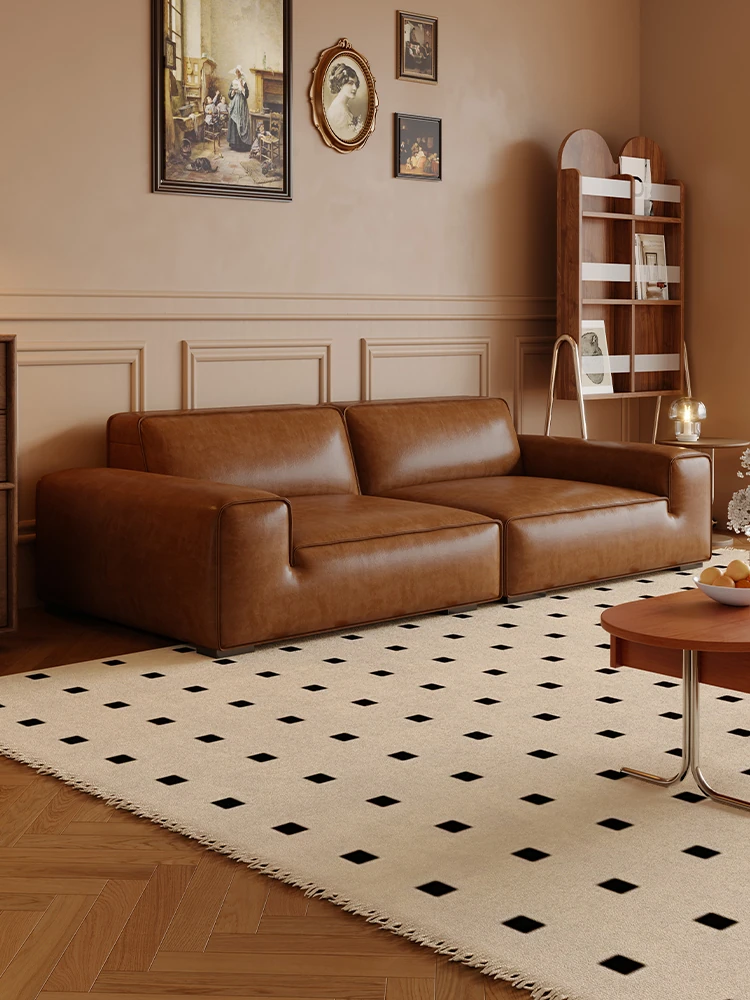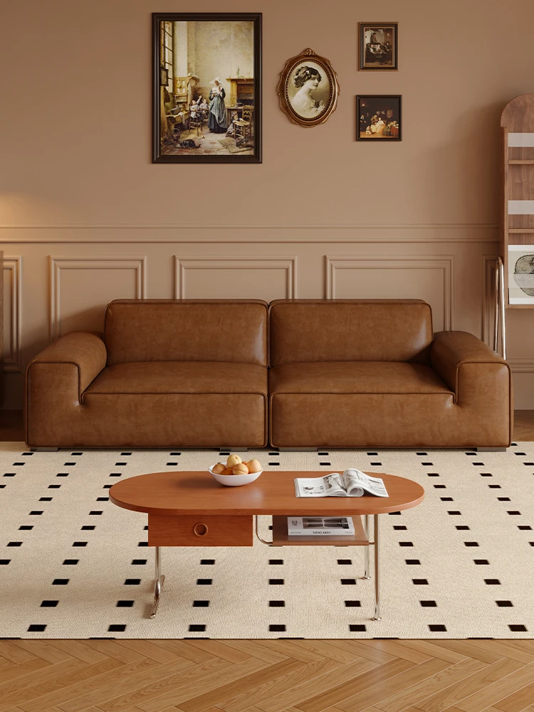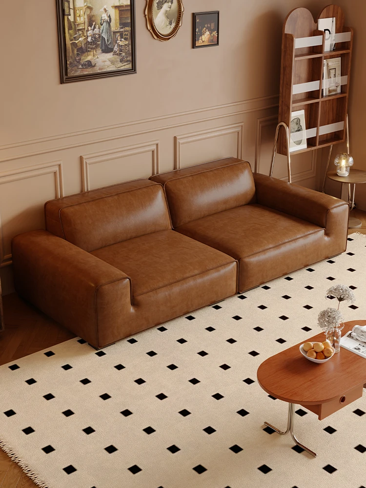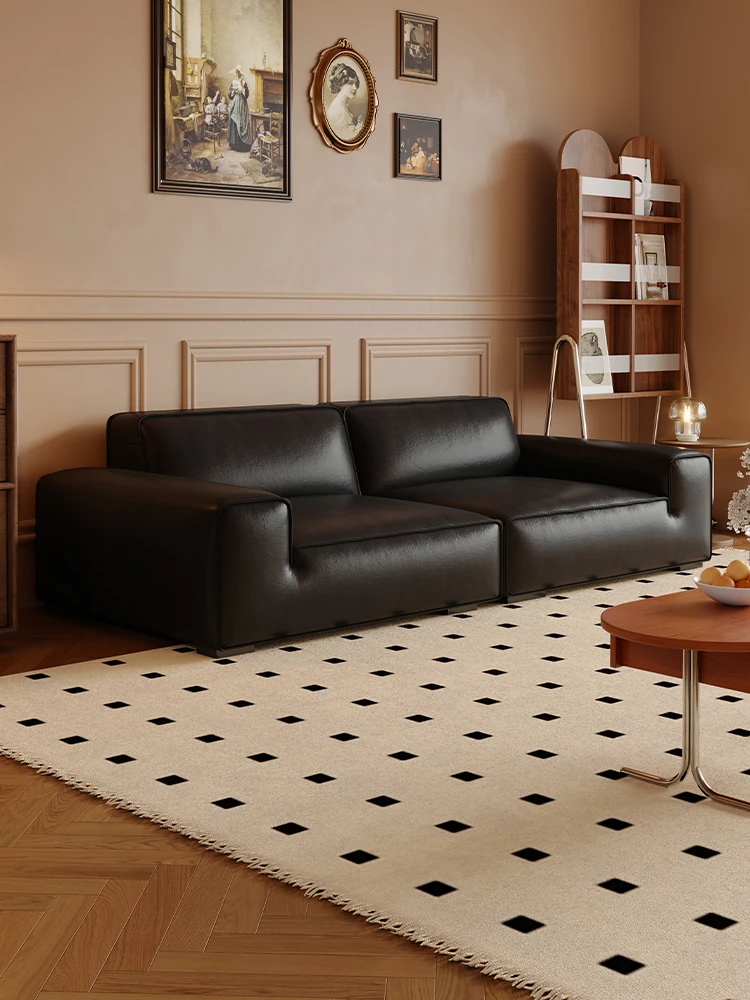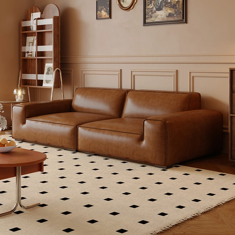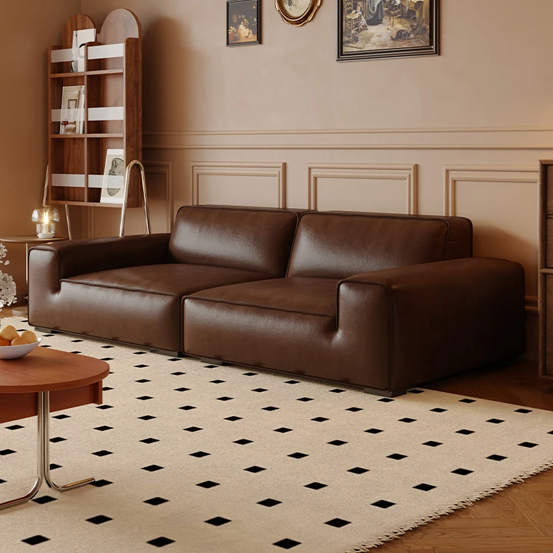 Vintage Waxed Leather Black Cow Sofa - Perfect for Living Rooms, Apartments, and Small Spaces. Retro-style Distressed Brown Straight Sofa for a Timeless Look.
