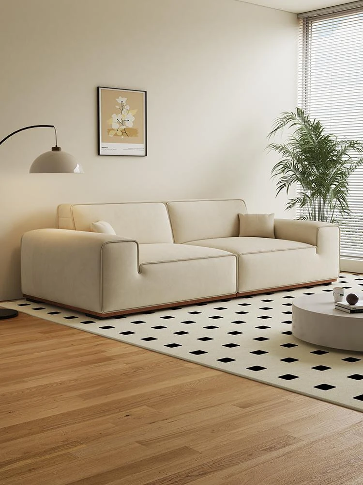 フレンチクリーム風の肌触り柔らかなベビーサンドイッチソファーセット - モダンミニマリストデザインの小型リビングに最適!快適さとスタイルを両立したおしゃれなソファ。