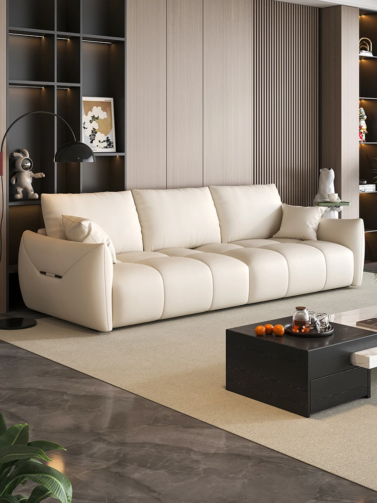 イタリアンミニマルエコレザー製ピアノキーソファ|現代的でシンプルなデザイン|小型アパートや民宿に最適|直線的なスタイルでお部屋をスタイリッシュに演出!